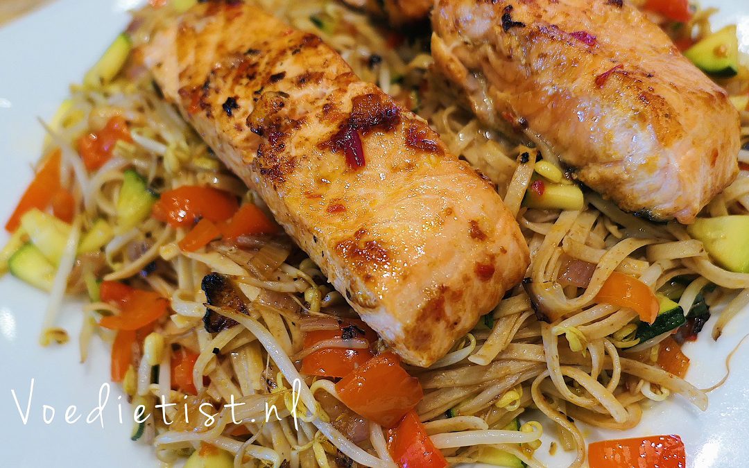 Oosterse noedels Dit recept is speciaal voor de mensen die graag willen aankomen in gewicht. De zalm bevat goede vetten die goed zijn voor hart- en bloedvaten. Mede hierdoor wordt het gerecht ook calorierijker. Wil je juist afvallen in gewicht? Dit recept...